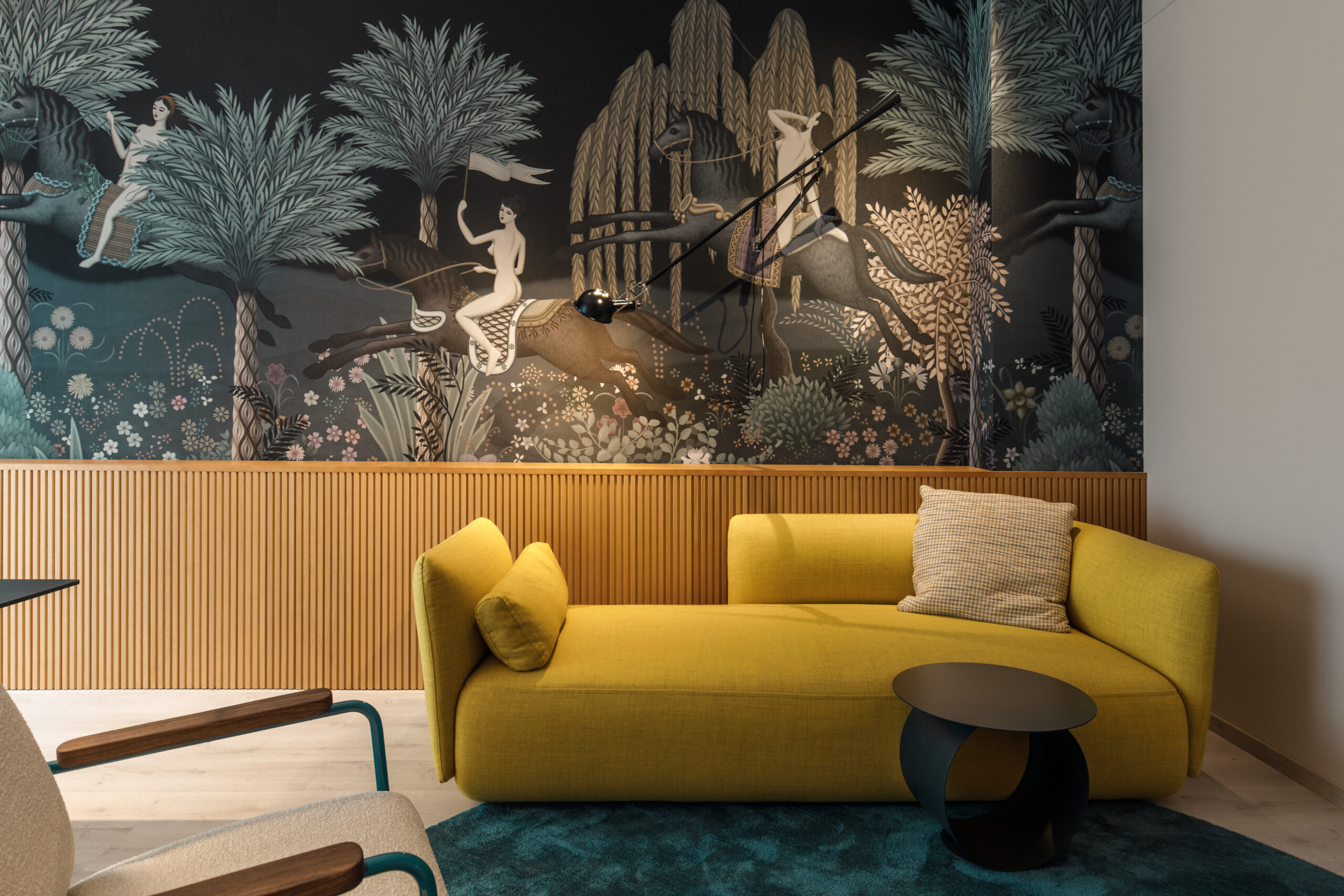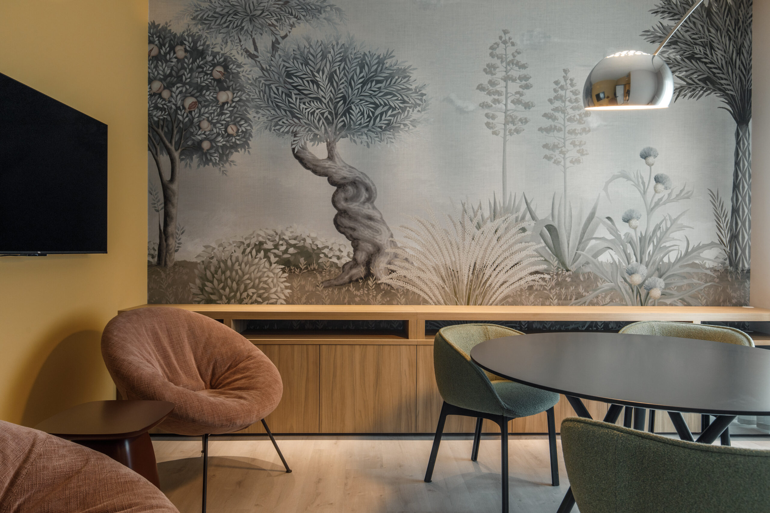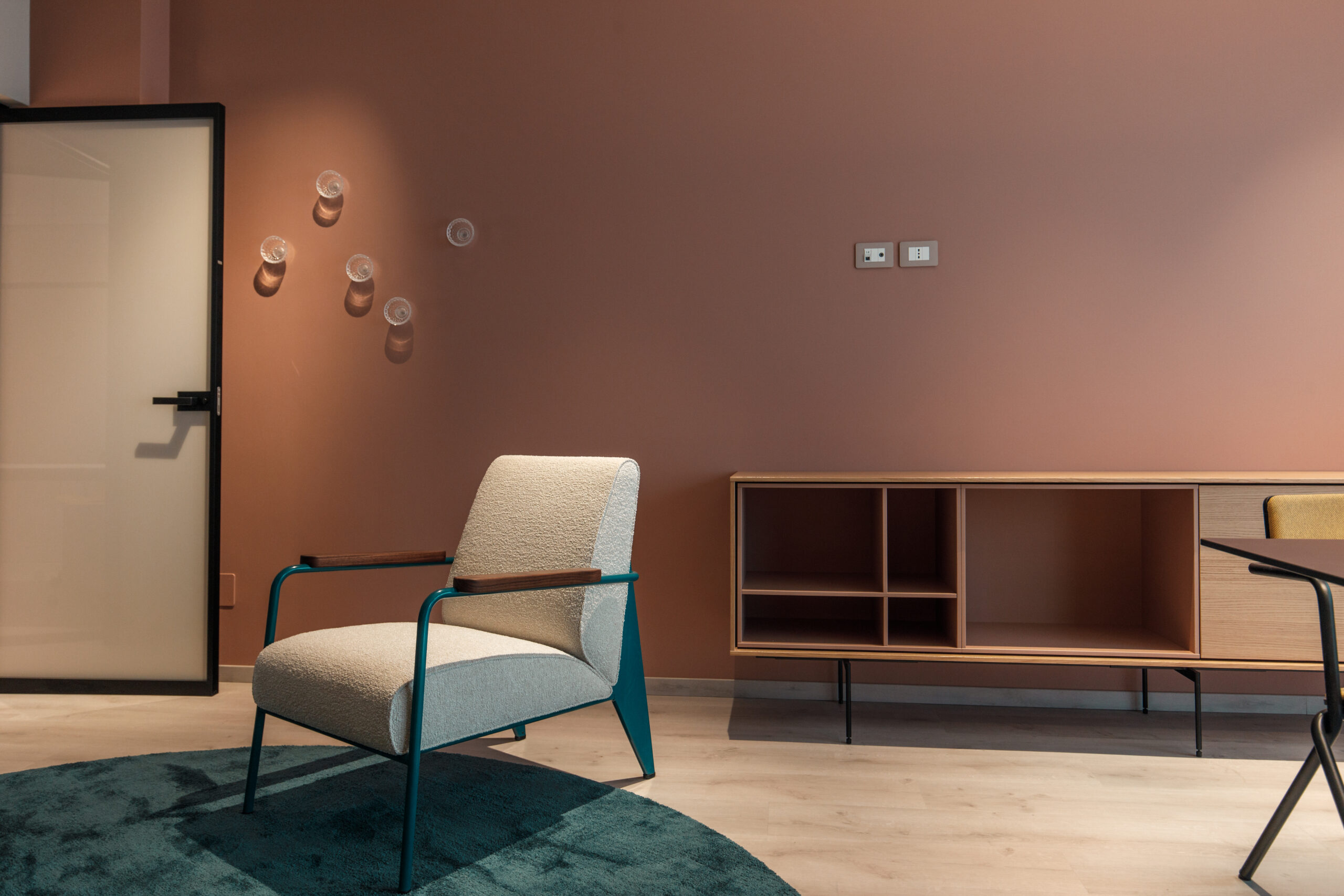 In tutti gli ambienti progettati, i colori si muovono con logica armonica, variando intensità e quantità in base alla funzione dello spazio.
