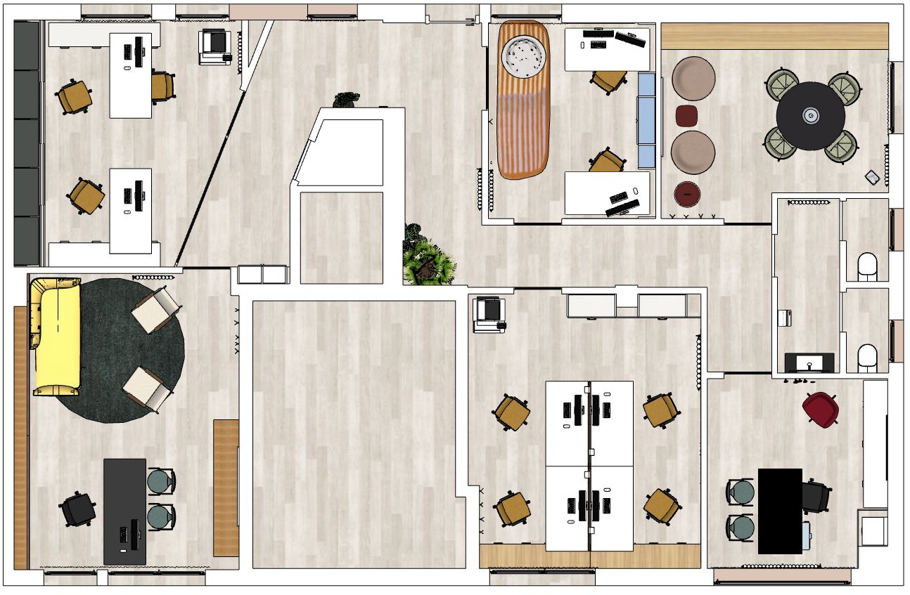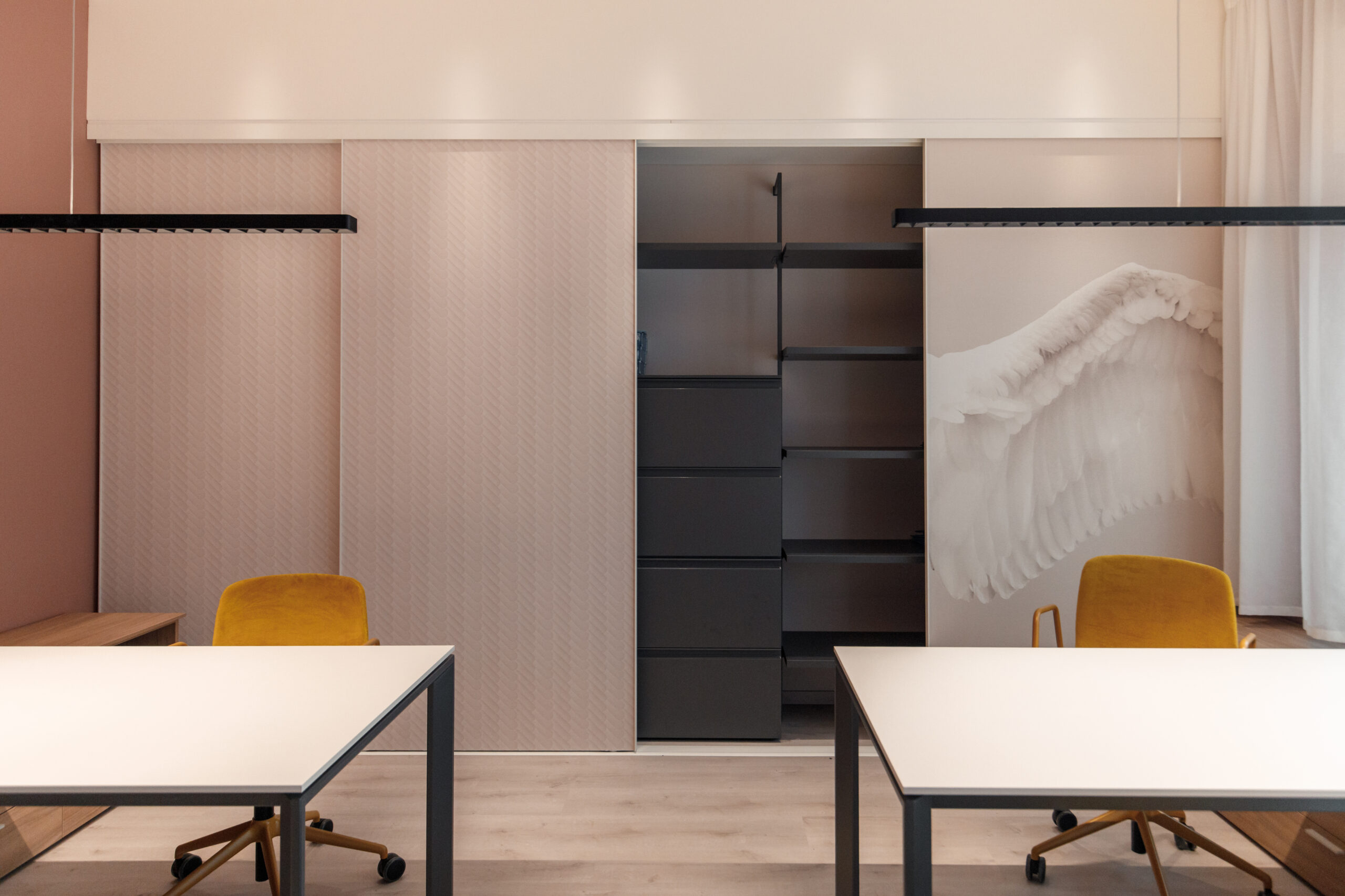 Ogni spazio è stato disegnato per rispondere a precise esigenze operative: ergonomia, facilità di movimento, equilibrio tra concentrazione e apertura.